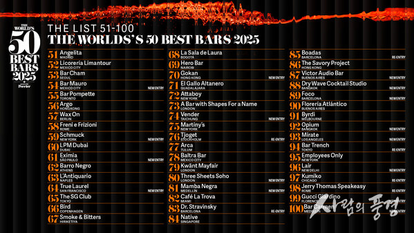 올해로 17회를 맞는 The World's 50 Best Bars 2025는 이번엔 홍콩에서 전 세계 음료인들이 모여 세계 최고의 칵테일을 선보일 예정이다. 50 Best는 51-100 명단을 통해 바와 칵테일 명소를 더욱 다양하게 조명하며 전 세계에 그 우수성을 널리 알리고 있다.
