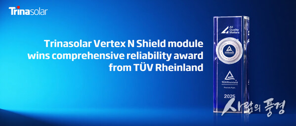 (사람의 풍경 peopleview 피플뉴스) 창저우, 중국 2025년 9월 30일 -- 트리나솔라(Trinasolar)는 '모든 품질이 중요하다(All Quality Matters)'라는 슬로건 아래 올해로 11회째를 맞는 TÜV 라인란드의 2025년 태양광 및 에너지 저장 시스템 컨퍼런스(Solar & ESS Congress 2025)에서 자사의 Vertex N Shield 모듈이 탁월한 신뢰성을 인정받아 PV 모듈 부문 Comprehensive Reliability Award를 수상했다고 발표했다.