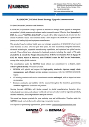 난퉁, 중국 2025년 9월 1일 -- 고성능 장비 제조 분야 글로벌 선도기업인 레인보우코(RAINBOWCO)(SZ002483)가 9월 1일부터 중국 타이창 공장에서 생산되는 항만 컨테이너 장비 브랜드를 기존 젠마-칼마르(GENMA-KALMAR) 공동 브랜드에서 통합 브랜드인 '젠마(GENMA)'로 전환한다고 밝혔다. 젠마의 글로벌 브랜드 영향력 강화를 목표로 하는 이번 전략적 결정은 레인보우코의 고성능 장비 제조 글로벌 확장 전략이 새로운 단계로 접어들었음을 의미한다. 이번 리브랜딩에 따라 레인보우코의 제품 브랜드 포트폴리오는 두 가지 핵심 브랜드인 '젠마'와 '코흐(KOCH)'로 집중된다. 2003년 설립된 레인보우코는 중국 타이창 본사를 중심으로 전 세계에서 5개 제조 거점을 운영하고 있으며, 3600명 이상의 직원을 두고 있다. 매출액은 2024년 기준 10억 달러를 넘어섰다. 레인보우코의 항만 컨테이너 장비는 전액 출자해 세운 자회사 장쑤 레인보우 산업 장비(Jiangsu Rainbow Industrial Equipment Co., Ltd.•RIC)에서 제조한다. 레인보우코는 2004년 글로벌 장비 거대 기업