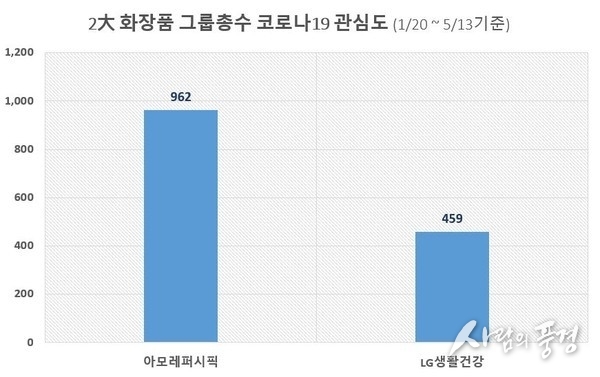 코로나바이러스감염증-19(코로나19) 사태가 장기화되고 있는 가운데 국내 뷰티업계 빅2인 서경배 회장과 차석용 부회장에 대한 빅데이터 분석 결과 서 회장이 감염병 방역 및 사회공헌 활동에 관심도가 더 높은 것으로 나타났다.