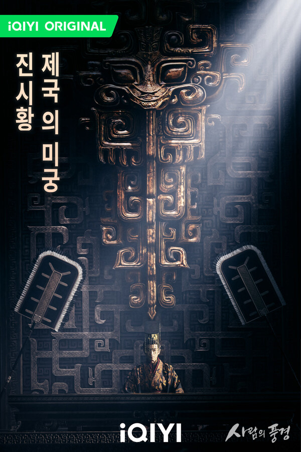 포스터는 치밀한 고증을 바탕으로 새롭게 디자인된 진나라 궁정 대전의 모습을 선보이며, 위엄과 질서, 날카로운 강렬함으로 가득한 '진나라 시대 미학'을 창의적으로 정제하여 재해석했다. 기존 사극에서 흔히 보던 화려하고 다채로운 시각적 표현을 버리고, 검은색과 금색 중심의 절제된 색조와 엄격한 건축적 구성을 채택했으며, 건축의 모든 선, 빛과 그림자의 대비, 장식 문양 하나하나에 당대의 정신이 담기도록 구성했다. 동양의 역사적 관점을 전 세계 관객이 폭넓게 이해할 수 있는 시각적 서사로 풀어내어 '질서•권력•체계'라는 새로운 시각적 언어를 전달한다. 자신감 있고 개방적인 문화적 대화를 향한 제작진의 의지가 엿보인다.