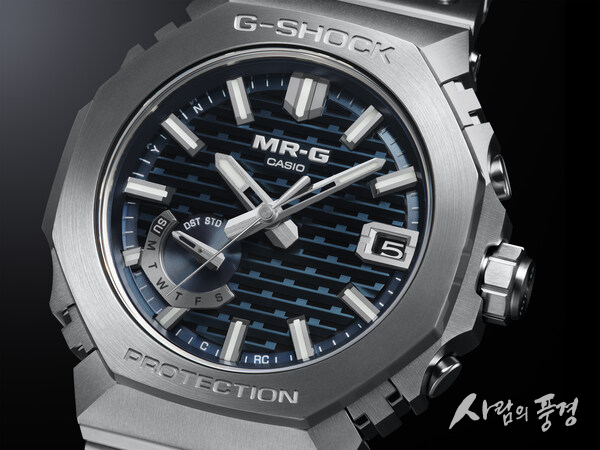 도쿄 2026년 1월 8일 -- 카시오 컴퓨터(Casio Computer Co., Ltd.)가 오늘 내충격 구조의 시계 브랜드인 지샥(G-SHOCK)의 최고급 라인에 속하는 신형 MR-G를 출시한다고 발표했다. 신형 MRG-B2100D는 일본의 전통적인 목공예 이음 기법인 기구미(きぐみ, 木組み)*1에서 착안한 입체 격자 무늬 다이얼과 우아한 블루 계열 색상인 하나다이로(はなだいろ, 縹色)가 조화를 이루고 있다.