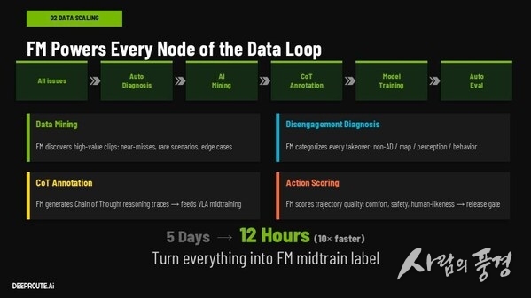 딥루트닷에이아이의 차오 통이(Tongyi Cao) 최고기술책임자는 "자율주행의 핵심은 확장성의 문제"라고 말했다. 이어 "업계가 상당한 발전을 이루었지만, 기존 실행 경로에 결함이 있기 때문에 진정한 대규모 구축은 여전히 요원하다. 병목 현상은 더 이상 데이터 확보의 문제가 아니라, 시스템이 노이즈를 얼마나 효율적으로 걸러내고 방대한 원시 데이터를 고가치 학습 샘플로 변환할 수 있느냐의 문제"라고 덧붙였다.