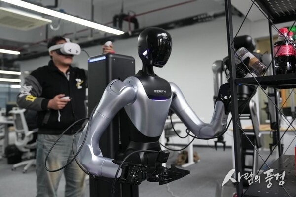 닝보 푸즈 퓨처 로보틱스(Ningbo Puzhi Future Robotics Co., Ltd.)가 운영하는 대화형 전시 공간에서는 휴머노이드 로봇이 음악에 맞춰 움직이고, 바퀴 달린 기계가 슈퍼마켓 진열대에 물건을 쌓는다. 촉각 센서, 로봇 팔의 움직임, 영상 데이터 등에서 생성된 데이터는 다시 모델 학습에 활용된다.