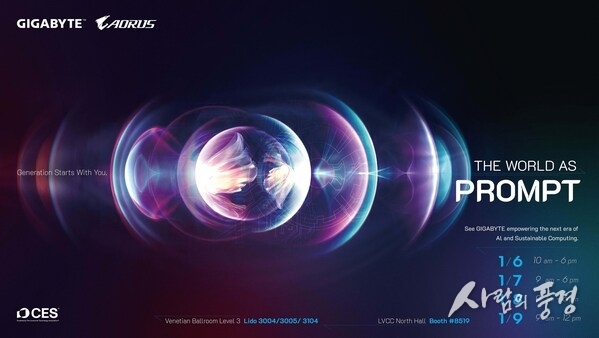 (사람의 풍경 peopleview 피플뉴스) 타이베이 2026년 1월 14일 -- 기가바이트(GIGABYTE)가 1월 6일부터 9일까지 열리는 CES 2026에서 인간과 인공지능의 상호작용에 대한 새로운 비전을 공개한다. "프롬프트로서의 세상(The World as Prompt)"이라는 테마 아래, 기가바이트는 첨단 노트북 기술, 지능형 소프트웨어 및 인간 중심의 상호 작용을 결합한 몰입형 AI 기반 경험을 선보이며 인간과 AI의 새로운 협력 모델을 탐구한다.