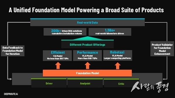 차오 최고기술책임자는 "2025년 말까지 딥루트닷에이아이의 자율주행 시스템이 탑재된 양산 차량 25만 대 이상을 성공적으로 출하했다"고 말했다. 이어 "파운데이션 모델은 딥루트닷에이아이의 차세대 자율주행 지원을 위한 핵심 초석이자 물리적 세계를 위한 근본적인 AI 프레임워크로 기능한다. 이 통합 아키텍처는 시스템이 단순한 실행을 넘어 복잡한 교통 환경을 이해하고 의사결정의 기저 논리를 설명하며 주행 행동을 평가할 수 있게 한다. 이러한 진화는 자율주행 시스템에 더욱 포괄적인 인지 및 의사결정 역량을 부여한다"고 덧붙였다.