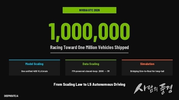 산호세, 캘리포니아 2026년 3월 18일 -- 딥루트닷에이아이(DeepRoute.ai)가 엔비디아(NVIDIA) GTC 2026에서 자율주행 개발의 근본적인 혁신을 대표하는 400억 파라미터 규모의 비전-언어-액션(VLA) 파운데이션 모델 아키텍처를 종합적으로 소개했다. 이 모델은 인식, 추론 및 행동을 통합한 통합 아키텍처를 도입해, 시스템이 단순히 주행하는 것을 넘어 자체 의사결정을 실시간으로 이해하고 평가할 수 있도록 한다.